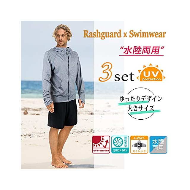 商品名:【ARMOTO】 ラッシュガード メンズ 水着 長袖 パーカー レギンス サーフパンツ フィットネス [UVカット UPF50+・吸汗速乾] 水泳 水陸両用 大きいサイズ