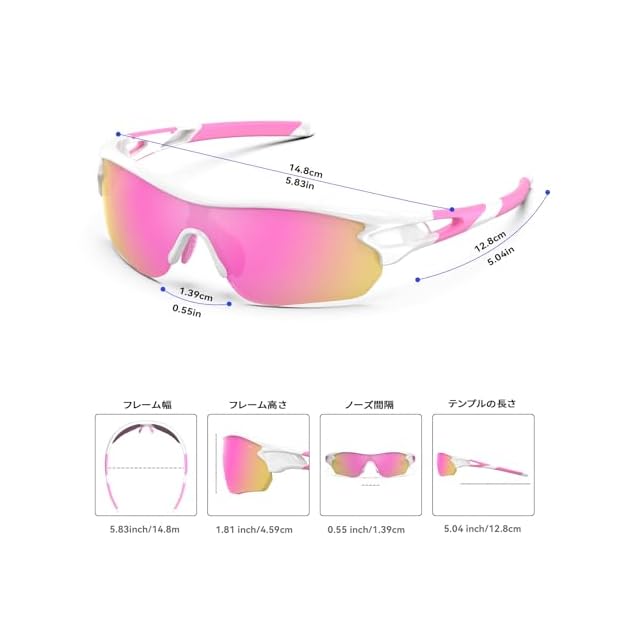 完璧なフィット感:BEACOOLスポーツサングラスは完璧なフィット感を提供するように設計されています。レンズ幅70 mm(2.76 inches)、ノーズブリッジ14mm(0.55inches)、フレーム長148 mm(5.83 inches)で、男女ともに快適な掛け心地を確保しながら、最適なカバー力を提供します。また、フレームとレンズのカラーコンビネーションが豊富です