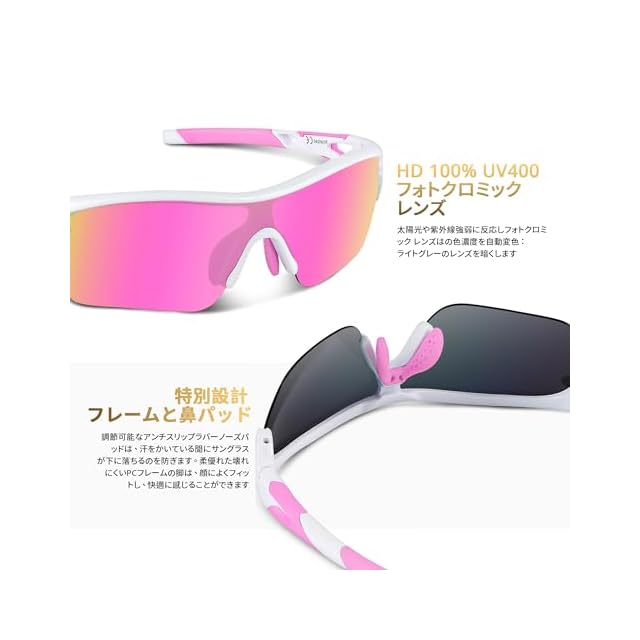 柔らかいフレーム素材: 軽量なTR90リムレスジャケットフレームの設計は剃りにくく、耐衝撃性、耐傷性、耐久性に優れた壊れにくいです。汗をかいたときにサングラスが落ちるのを防ぎ、顔にしっかりとフィットする柔軟滑り止めゴム鼻パッド。サングラス 夜間運転用は高品質で超軽量、強度、柔軟性、安定性が高く、高速スポーツ時にクリアな視界を提供しており、日本人のために設計されています