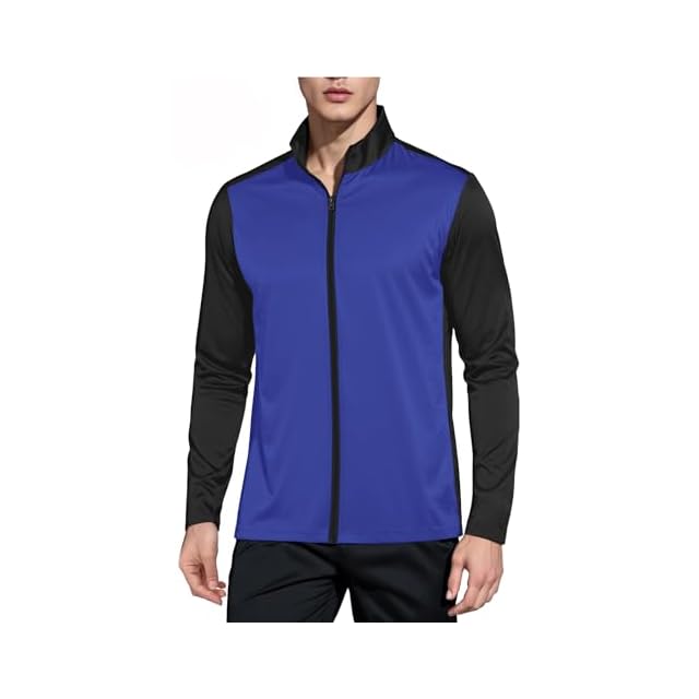 [Rmally] ラッシュガード メンズ 長袖 水着 [伸縮性・速乾・UVカット] ラッシュパーカー ジップアップ スタンドカラー UPF50+ S~2XL 大きいサイズ 紫外線対策 接触冷感 体型カバー プール 海 海水浴 サウナ 水陸両用 (ブラック&ブルー,2XL)