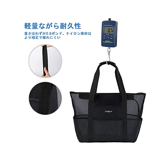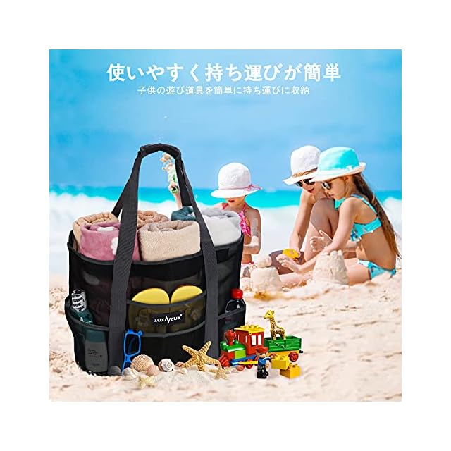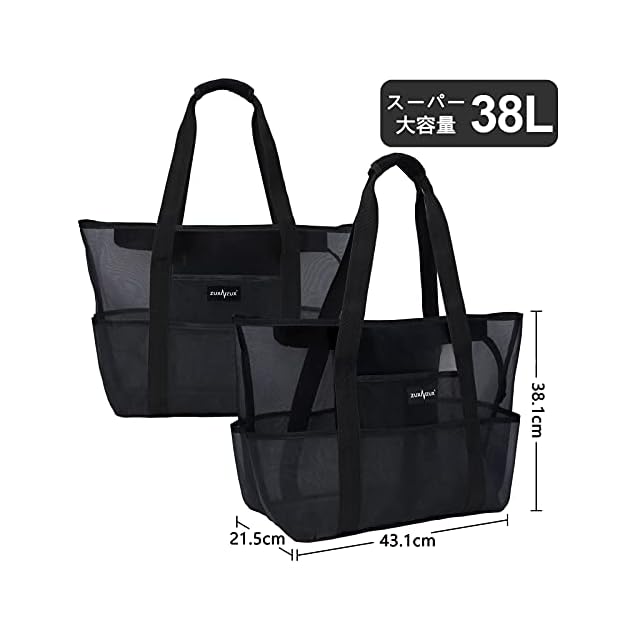 商品名:[ZUXNZUX] ビーチバッグ プールバッグ 軽量 38L 大容量 速乾 自立式 折り畳み可能 メッシュ ビーチ/ショッピング/水泳/ジム/スパ/温泉/旅行用 バッグ (ブラック)