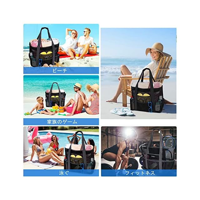 【幅広い用途】当社のビーチバッグは、2 層の暗号化されたネットワーク構造と、プライバシーを守るためのジッパーを備えています。海やプールはもちろん、ジムや銭湯でも使えるバッグ。普段使いからプール、ビーチ、釣り、温泉、スパ、キャンプ、スポーツ、ショッピング、出張なとに適用できます。お花見やピクニック、家族旅行、花火大会、運動会など大容量なので荷物が多い場合に幅広くも使用できます。