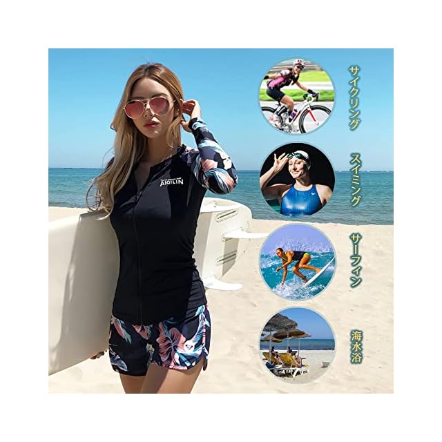 商品名:[YFMAYI] ラッシュガード レディース 5点セット スタイリッシュ 長袖 UVカット 水陸両用