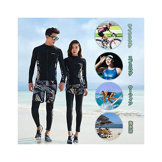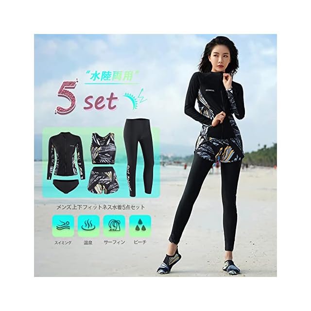 商品名:[YFMAYI] ラッシュガード レディース 水着 上下セット 女性 温泉 ビーチ 水泳 スイミング UVカット 5点セット