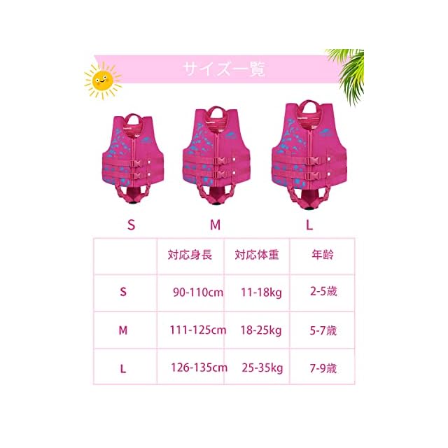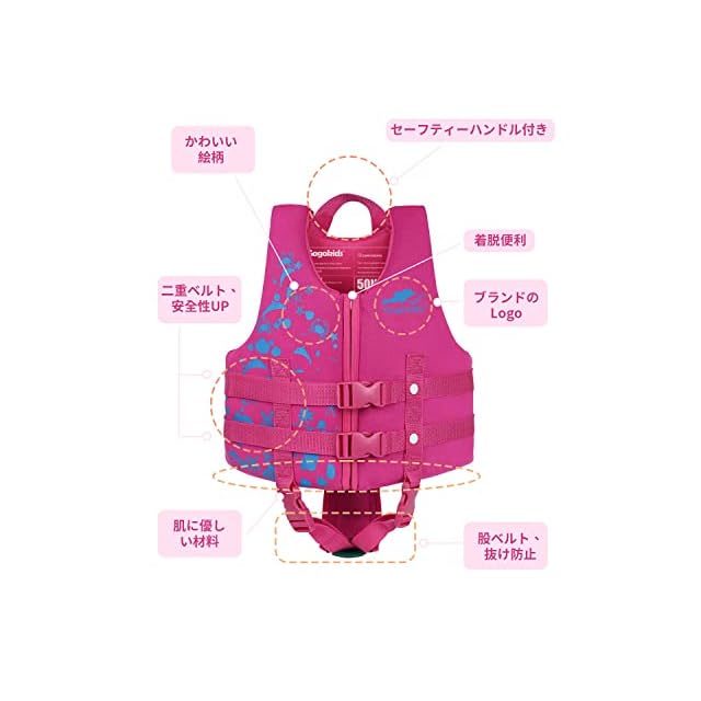 <p>Gogokidsは、お子様の体を守るために、肌に優しい素材を使用しています。 安全性確保の上に、フィット感とおしゃれなデザインも兼ね揃えています。 お子様に楽しい水遊びをさせてあげましょう。</p><p><br></p><p></p><p><b>商品詳細</b></p><p>素材:ポリエステル+EPEフォーム</p><p>商品サイズ:</p><p>S:90-110cm 11-18kg</p><p>M:111-125cm 18-25kg</p><p>L:126-135cm 25-35kg</p><p>カラー:ピンク、ブルー</p><p>メーカー:ご購入からの90日間以内、製品自体の欠陥による故障が発生した場合、無償で交換いたします。</p><p><br></p><p></p><p><b>ご注意:</b></p><p>※汚れたら水で洗い、風通しの良い場所で乾燥させてください。</p><p>※水や日光、熱から保護するため、専用の袋に保管してください。</p><p>※CE認証済みですが、運輸省の形式承認を受けた救命胴衣ではありませんので、小型船舶の備品としては認められません。</p>