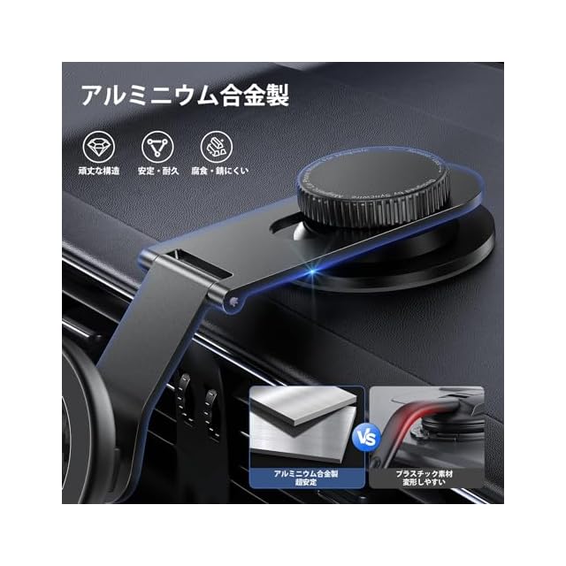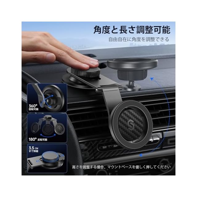 商品名:SYNCWIRE スマホホルダー 車 マグネット MagSafe 車載 ホルダー 全金属 アルミニウム合金 伸縮アーム 超強力 3M粘着シール 360度回転 超強磁力 iPhone 15 14 13 12 Samsung Sony など全種類に対応