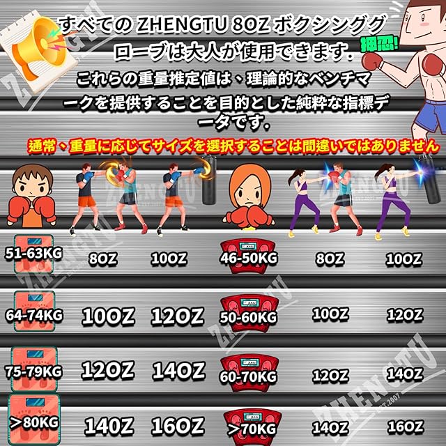 【職人技と素材の継続的な革新】:ZHENGTU シリーズ第3世代のボクシンググローブ3層構造の天然ゴムの複合材裏地を革新的に導入し、震動をより効果的に吸収し緩和することができ、着用者の力をはっきり伝達可能となります。耐摩耗性、質感と被覆性は第1世代より50%高いです。新しく改良された8ozサイズは成年者の着用に最適です。