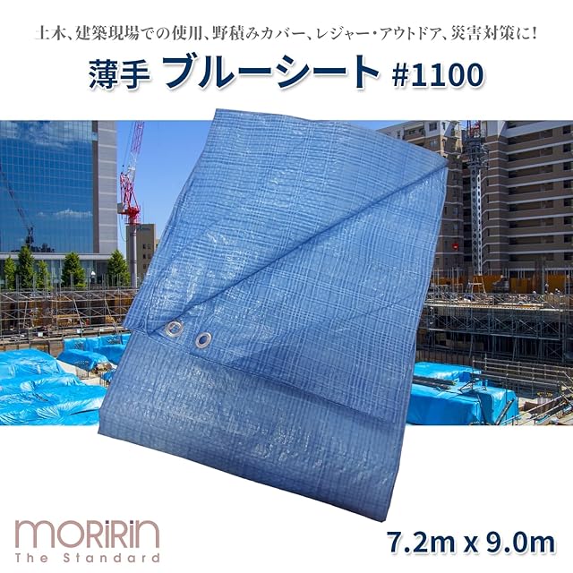 商品名:モリリン ブルーシート レジャーシート #1100 薄手 7.2m×9.0m ハトメ付き 軽量タイプ 1枚入