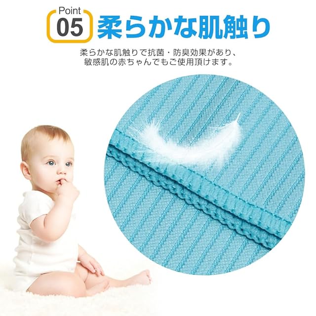 【肌に優しい・高耐久性】従来の綿素材より繊維素材は高強度で耐久性がある特長を待っています。手触りが柔らかいので、通気性が抜群で、超低摩擦なので、肌に心地よく、敏感な赤ちゃんにも使えます。