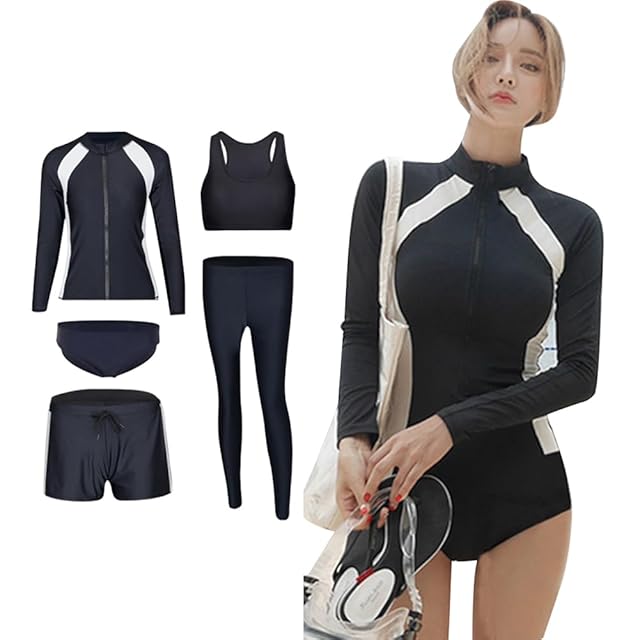 <b>【セット内容】</b><br/> 長袖ラッシュガード、ショートパンツ、ブラ、レギンス、ビギニショーツがセットになっています。長袖ラッシュガードとレギンスセット、レギンス付き足首まであるので、虫刺されやクラゲ対策、擦り傷などの外傷対策にも。<br/><br/> <b>【吸汗速乾】</b><br/> 速乾性に優れた水着素材なので、海やプールだけでなくジムやヨガなど 、汗をかくシーンでの使用もOK、水陸両用で全アイテム着たまま水に入れます。軽量なのでとても動きやすく、最適の機能性、吸汗速乾通気のドライ繊維、激しい運動の後もさらっとした着心地!<br/><br/> <b>【UVカット】</b><br/> 安心のUV対策生地を使用しているため(肌に有害な紫外線を98%以上カット)、日差しが強い時の日焼け防止にも大活躍。もちろん紫外線対策もばっちりでお肌を守ります、防菌防臭。<br/><br/> <b>【優れたデザイン】</b><br/> お洒落な柄プリントすっきりしたシンプルなデザイン、機能性だけでなくデザインも考え抜かれた商品です。襟元、手首、足首にスキンケアデザインを使って、運動の快適性をします。<br/><br/> <b>【適用場合】</b><br/> 夏場のウォータースポーツや野外活動の際、海、ジム、プールやビーチ、、温泉と幅広いジャンルで使える便利なスポーツ・アイテムです。通勤、通学、ランニング、ヨガなど、スポーツウェアとしてもご利用いただけます。