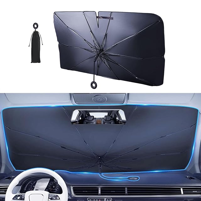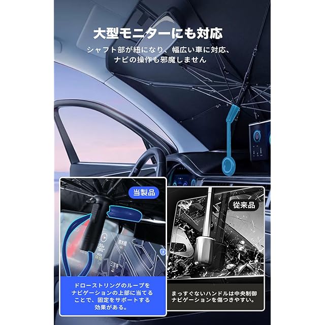 【中棒無しデザイン】中棒無し、取り付け時は車のダッシュボードと内装に傷をつけることがありません。2025年最新版傘型車用サンシェード、伝統的なサンシェードとは異なり、本製品は骨組みに工夫を凝って頑丈な十本の傘骨を採用して優れた耐用性を持っています。耐摩耗性、耐老化性、耐衝撃性が優れている。