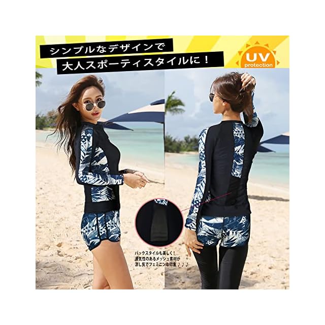 商品名:フィットネス 水着 レディース 体型カバー ラッシュガード 5点セット ビキニ ショートパンツ レギンス ショーツ [接触冷感・UPF50+・吸汗速乾]