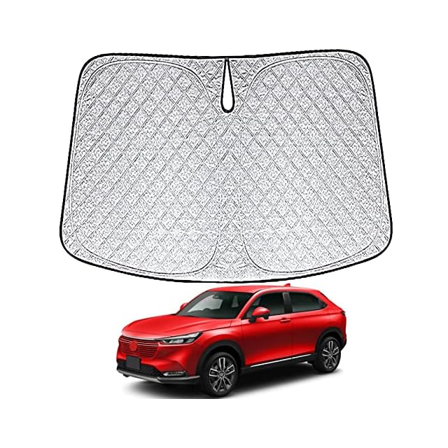 ホンダ との互換性あり 新型 ヴェゼル RV系 サンシェード フロント サンシェード 日よけ シェードカーテン RV3-6型 フロント 折り畳み式 遮光 断熱 軽量 かっこいい コンパクト UVカット 収納袋付き 6層構造 | Trend Design BASE店