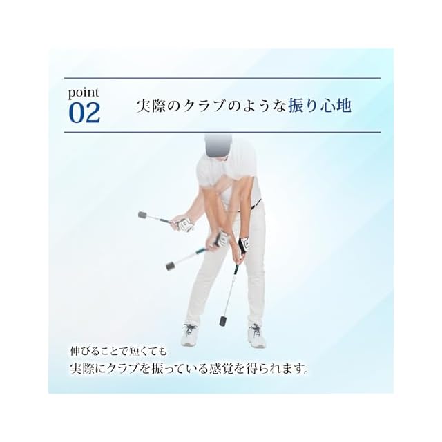 スイングした時の加速でシャフトが約61cmまで伸びるので、短くても実際のクラブのような振り心地を得られます。