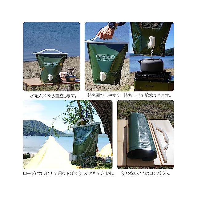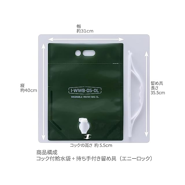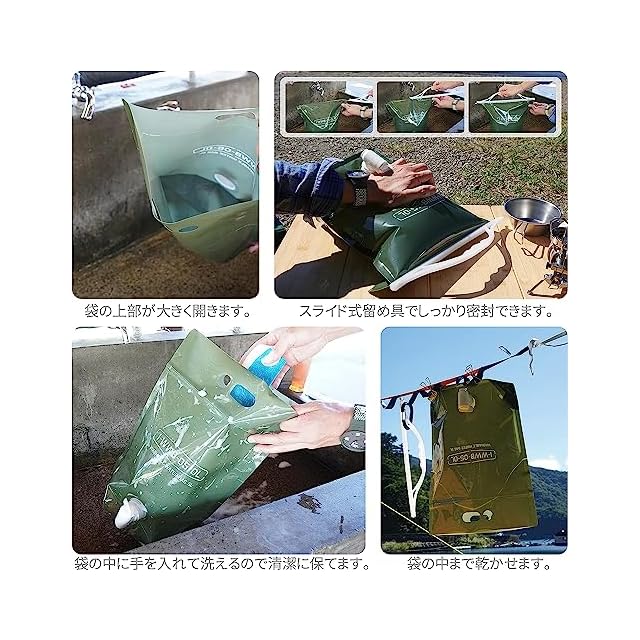 岩谷マテリアル(Iwatani Materials) 水タンク ウォッシャブル ウォーターバッグ 5L 2個セット オリーブグリーン WWB-5OL 洗える 乾かせる 注ぎやすいコック付き キャンプ レジャー 防災 コンパクトにたためる | Trend Design BASE店