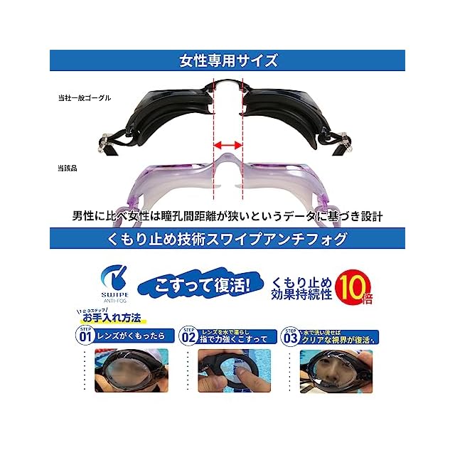 対象年齢:10歳~大人、こするだけでくもり止め効果が復活するSWIPE搭載