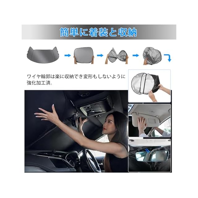 3.【眩しい防止】:表はドット柄をデザインされ、メッシュのようなため、反射が少なく、アルミ遮熱シートの眩しい光線を抑えることができます。他人に迷惑を掛けないし、プライバシーも保護できます。また、スポーティタイプのため、しなやかは特徴!設置簡単だけでなく、収納もスッキリに!より使い勝手になります。