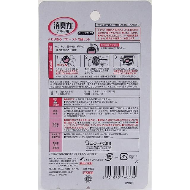 商品名:消臭力 クルマの クリップタイプ 車用 フローラルの香り 2個セット 車 消臭剤 消臭 芳香剤