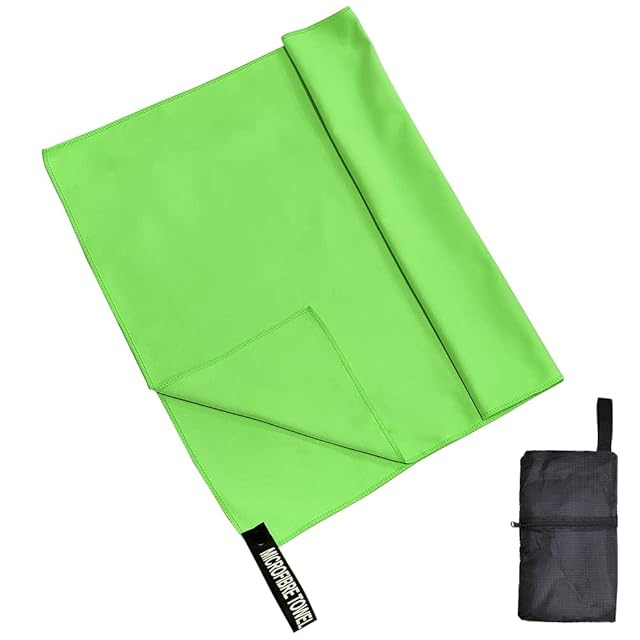 速乾タオル 髪 マイクロファイバータオル バスタオル スポーツタオル ジムタオル スイミングタオル セイムタオル 旅行タオル 超吸水 柔らかい 耐久性 速乾 軽量 収納袋付き 80x40cm (グリーン) | Trend Design BASE店