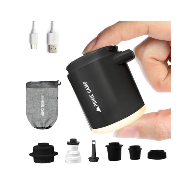キャンプ エアーポンプ 電動 空気入れ 超軽量 強力170L/分 【6つのノズル&ライト付】 エアポンプ 1360mAh大容量バッテリー USB充電式 空気抜き インフレーターマット キャンプ 浮き輪 (ブラック) | Trend Design BASE店