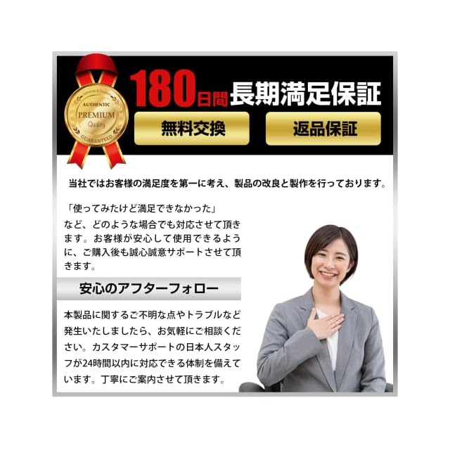【安心の180日と国内メーカーによるサポート】期間は180日で故障や不具合など交換対応致します(不適切なご使用方法による故障はの対象外です)。また、日本人スタッフによるサポートなので何かご不明点などがあった際は安心してお問合せください。