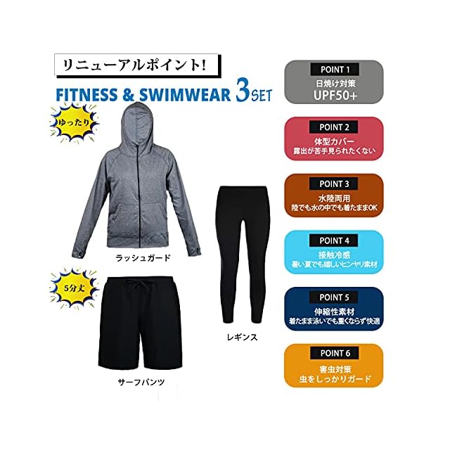 【セット内容】ラッシュガード、レギンス サーフパンツ。