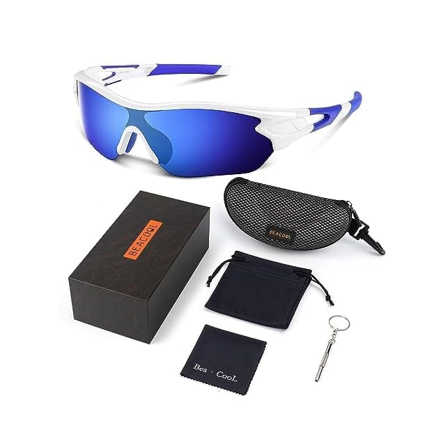 .BEACOOL - Worth your try and trust.✓Beacool sunglasses will protect your precious eyes.✓Ideal for all men, women and those with sensitive or dry eyes.✓Shield your eyes from harmful UV rays, wind, debris, dust, and even water.✓Reduce eyestrain, itchiness, redness, and eye discomfort with these sunglasses.1. Flexible materials make the frame best fit for any shape of faces.2. Protective gasket help you to avoid hurts from impacts.3. Super light weight frame suits your flexible movement..Package Includes:1 x Sports Polarized Sunglasses1 x Hard and exquisite protective case1 x Carrying zipper pouch1 x Cleaning soft cloth1 x Soft Microfiber pouch1 x Sunglasses screwdriverIt is also GIFT packaged already, making it a wonderful yet practical gift idea for your active friends and family!.NO RISK PURCHASE: 100% satisfaction guaranteed, that is our promise.So, if you're not completely happy with your purchase within the first 30 days, just let us know and we will reply you within 24 hours!.Precautions:➤Prolonged exposure to salt water not recommended due to the corrosive nature of saltwater.➤Don't use the finger to clean the lens directly, please use the cleaning cloth to wipe the lens.➤Don't watch the sun directly for a long time.➤Do not place the sunglasses in an environment higher than 60 degrees, Long time- the high temperature will cause the lens melting, film explosion, adhesive layer peeling. especially do not try to put polarized sunglasses in the car in the summer.