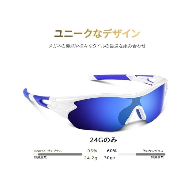 商品名:[BEACOOL] スポーツサングラス 偏光レンズ 自転車 登山 釣り 野球 ゴルフ ランニング ドライブ バイク テニス スキー 超軽量 UV400 TAC TR90 紫外線防止 メンズ レディース ユニセックス サングラス 安全 清晰