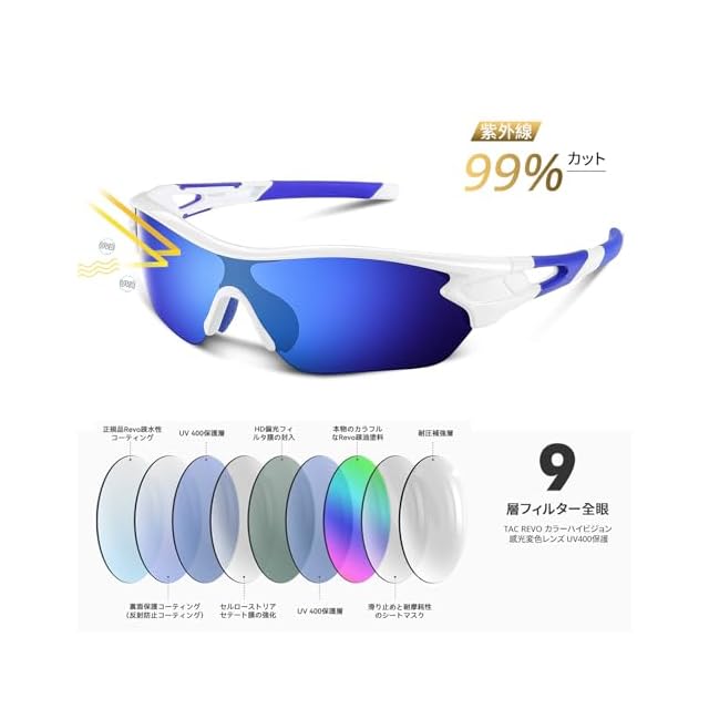 高品質のREVOカラーハイビジョン偏光レンズ:すべての偏光レンズは高品質破砕防止TAC材料で作られており、UV 400レンズ保護コーティング、有害なUVAとUVB 99.9%をブロックし、本物の色を復元し、REVO偏光レンズを使用して元の色を維持し、効果的に視覚の透明度とコントラストを改善し、より簡単に反射や散乱光を排除します。偏光サングラスは風景をよりクリアで柔らかくし、目の負担を減らします