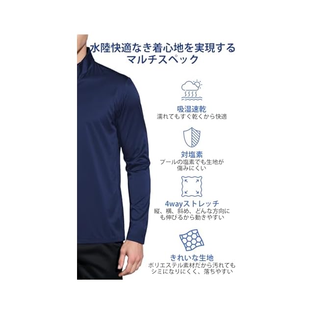 【優れた生地】85%ポリエステル、15%ポリウレタン水着素材で、紫外線対策、伸縮性、接触冷感、水陸両用です。ラッシュガード メンズ は様々なシーンで大活躍で、ランニング、サイクリング、海・プール、アウトドアなどシンプルカラーで着こなしやすさ抜群です。
