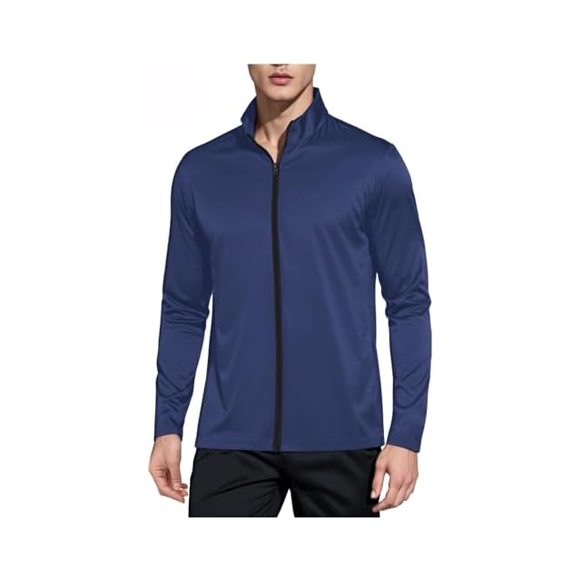 [Rmally] ラッシュガード メンズ 長袖 水着 [伸縮性・速乾・接触冷感・UVカット] フルジップ スタンドカラー ラッシュパーカー UPF50+ 紫外線対策 水陸両用 ラッシュガード メンズ 大きいサイズ 10色 S~2XL (ネイビー&L)