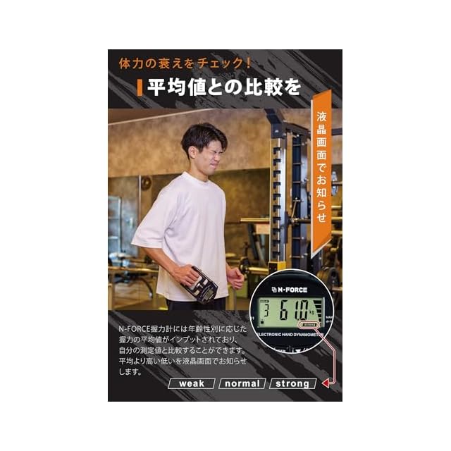 大き目デジタルが特徴の握力測定器。N-FORCE正規品はユーザー登録機能付。