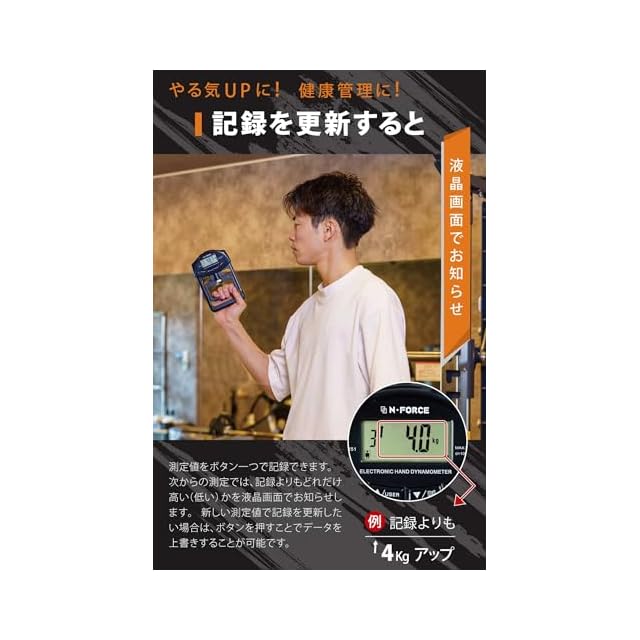 商品名:【 記録更新がひと目でわかる 】 N-FORCE(エヌフォース) 正規品 デジタル握力計 握力測定 書付 ブラックエディション