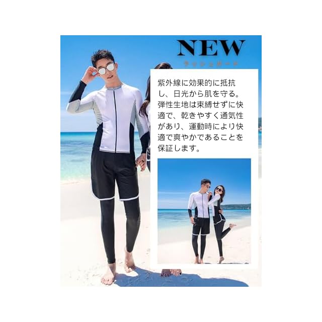 商品名:[xulee] ラッシュガード メンズ 水着 長袖 前開き サーフパンツ レギンス 3点セット ジップ アップ スイミング サーフパンツ レギンス ビーチ 水泳パンツ 温泉 通気性 [UVカット UPF50+・吸汗速乾] フィットネス 水陸両用 2301-3XL