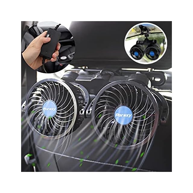 「2025年最新アップグレード」PORAXY 車載扇風機 車 扇風機 4インチ 車載ファン 電動ファン低騒音 無段階風量調節可能 角度調整可能 ツーファン付き リアフロント両用 汎用タイプ 夏対策 DC12V 車用 後部座席 扇風機 日本語マニュアル付 2025年1月25日よりモーターアップデート