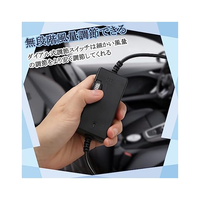 無段階風量調節可能:便利なダイヤル式の無段階風量調節スイッチが設置しておるので、風量を細かく調節していただきます。エアコンの風をアシストして素早く車内の温度を涼しくできます。