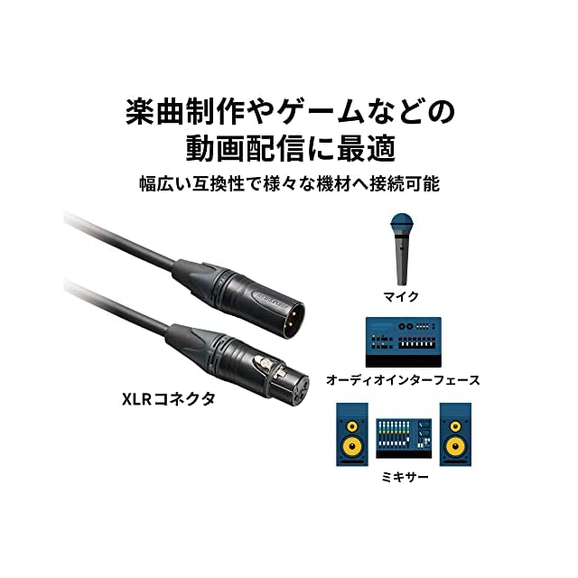 マイクロホン性能を最大限に引き出す、安心の日本製マイクケーブル。マイクロホンの性能を最大限に引き出す、3ピンXLR-Fタイプ-3ピンXLR-Mタイプを採用 したプロ品質の3.0mバランスケーブル。理想的なマイクロホン特性を再現できるオーディ オテクニカのXLRマイク『AT4040』や『AT2020』をはじめ、『AT2035』『AT2040』 『AT2050』とのご使用をおすすめします。