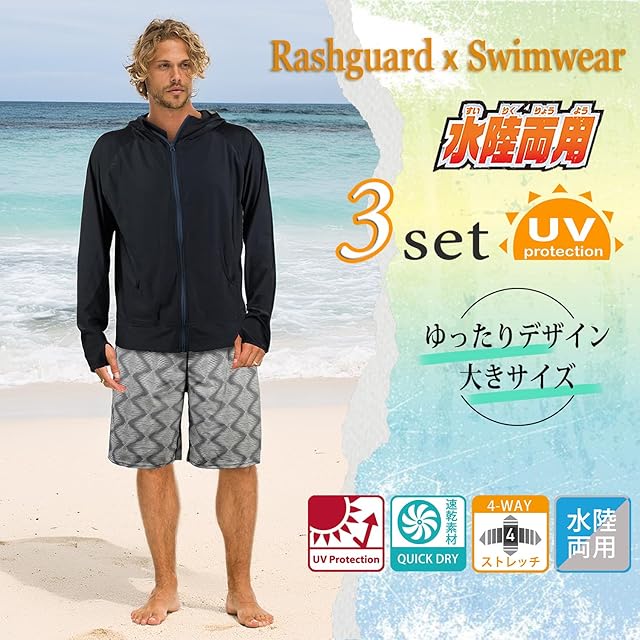 商品名:【ARMOTO】 ラッシュガード メンズ 水着 長袖 パーカー レギンス サーフパンツ フィットネス [UVカット UPF50+・吸汗速乾] 水泳 水陸両用 大きいサイズ