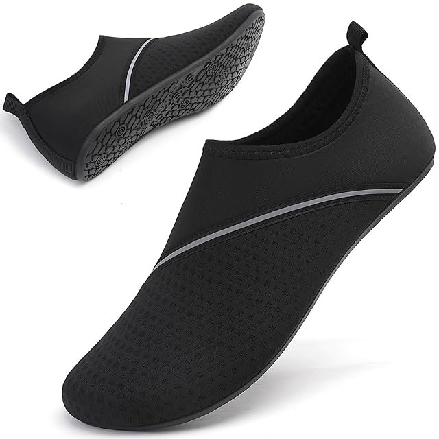 履き心地がいい:素足の感覚をそのままで! 超軽量マルチ機能性スキンシューズ。大人から子供までのサイズが揃えおるマリンシューズ。アッパーにはネオプレーンを採用することで、優れた伸縮性と排水性と通気性が期待できる。また、ソックスのような柔軟性で、履いても素足みたいな履き心地。弾力・伸縮性素材で足によくフィットし履き心地抜群。