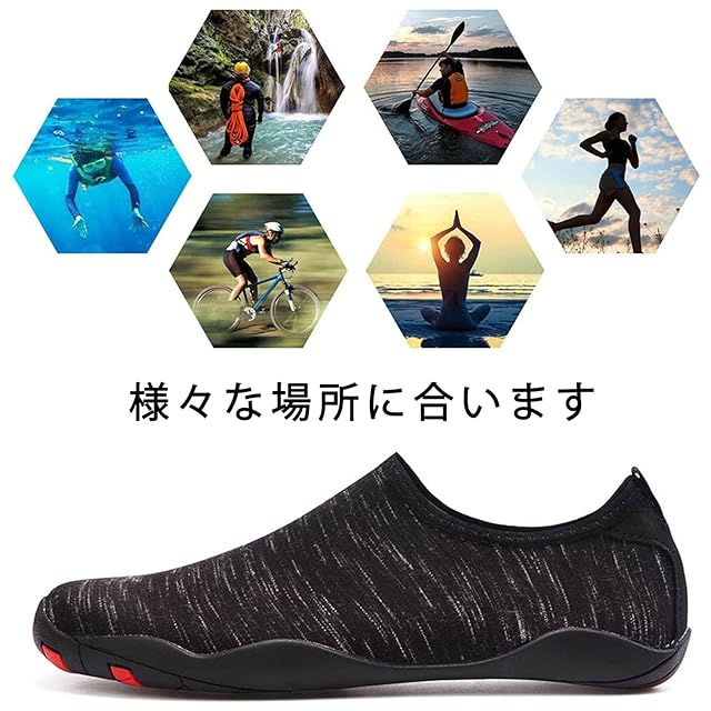 用途:水遊び、海水浴、散歩、お出掛け、オフィス、サイクリング、サーフィン、釣り、アウトドアシーン、マリンレジャーや川遊び、サンダル、ウォーターパーク、ビーチ、マリンスポーツやダイビング、シュノーケリング、室内スポーツや、ジムなどでもランニングシューズ、ガーデニング、車の洗浄など、幅広い分野で使える!川や海でのアウトドア・アクティビティに、ジムやヨガなどのトレーニングシューズに、会社や学校などで室内履きに、様々な用途で使っていただける商品です。性別、年齢に問わずおすすめの一足です。