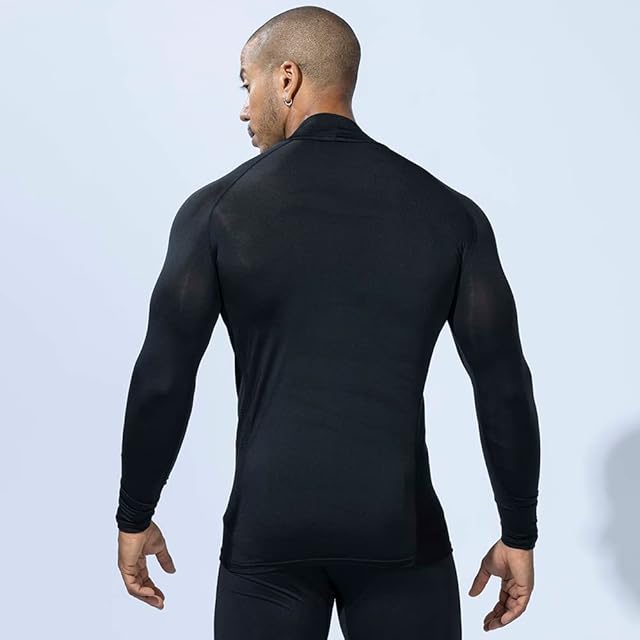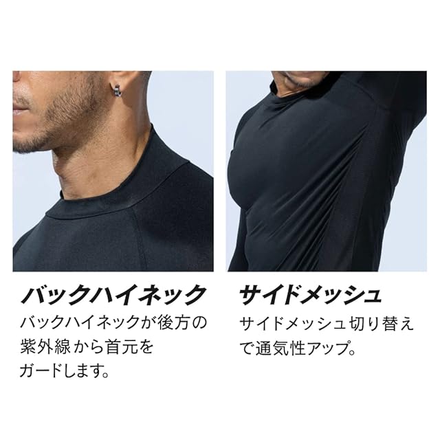 商品名:おたふく手袋 夏用インナー 長袖 ハイネック [接触冷感 吸汗速乾 消臭 コンプレッション UVカット メンズ] JW-625 ブラック S 【3枚セット】
