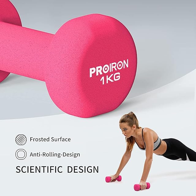 PROIRON ダンベル 1kg 2個セット 哑铃 ウエイト カラー ダンベル 鉄アレイ dumbbell 筋トレ(ピンク)
