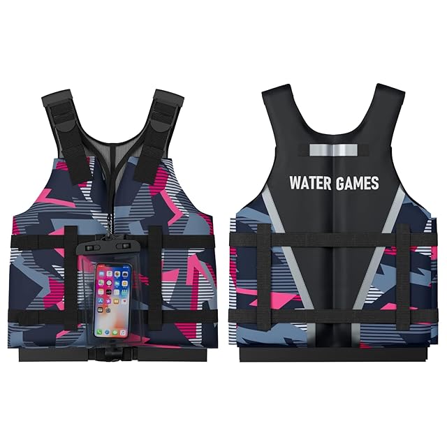 商品名:WATER GAMES ライフジャケット フローティングベスト シュノーケリングベスト 大人用 子供用 防水スマホケース 付き 日本国内メーカー 一般財団法人日本船舶品質管理協会 製品安全評価センター 浮力測定実施済 (大人用 Mサイズ/フーシャピンク)
