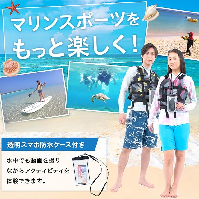 ✅【便利な防水ケース】付属の防水スマホケースで、大切なデバイスを水から守りながら、写真撮影や緊急時の連絡も可能に。内ポケットには小物を収納でき、手ぶらで海を楽しめます。