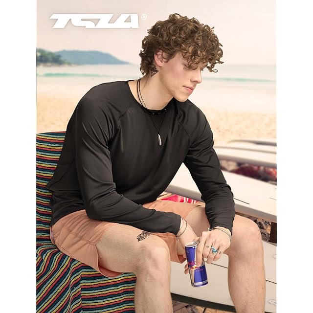 [テスラ] ラッシュガード 長袖 メンズ 水着 夏 [速乾・UVカット] レギュラーフィット スイムウェア スポーツ スイム tシャツ パーカー 大きいサイズ TM- MSS44-JPBLK_S