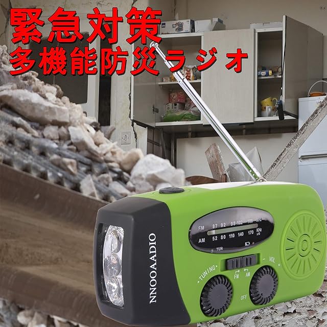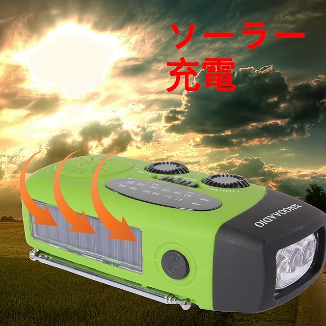 <p>【強力な防災ラジオ】自然災害を予測するのは難しいですが、事前に準備することができます。 この応急多機能ラジオは、AM / FM、3つの充電方法、懐中電灯をサポートし、2000mAhリチウム電池はモバイル電池として使用できます,iphoneやAndroid全スマホ充電対応可能。本体は220 g、12.8x6.0x4.5cmと軽量でコンパクトで,緊急救命ラジオにも最適です。</p> <p> </p> <p>【AM / FMラジオ】AM:520-1610KHz、FM:76-108MHz、日本の放送範囲全体をカバーしています。 パネルには「TUN」インジケーターがあり、ラジオが放送を受信すると「TUN」が黄色に変わります。 信号の受信をより明確にするために、より長い5セクションアンテナを装備。事前に防災対策をするようにお手伝いします。 地震、災害、津波、台風などの緊急対策のための防災グッズ。</p> <p> </p> <p>【大容量バッテリー】この携帯緊急ラジオには3つの充電方法があります。A。ソーラーパネルを太陽に向かって自動的に充電するソーラー充電。使用しない場合は、日光で充電できます。B.手回し充電,さまざまな環境に適しています。 ハンドルを1分間回転させると(ハンドル回転数が130以上)15〜20分ライト使用/5〜20分の中音量のラジオ使用/3〜5分の携帯電話の通話分充電。 C.USB充電、最速かつ効果的な充電方法。ラジオの充電中は、パネルバッテリーインジケーターが赤く点灯します。</p> <p> </p> <p>【照明と防水】このソーラーラジオは3つのLEDライトを共有しています。停電、戸外で家族と明るさをもたらすことができます。IPX 3-防水、この非常用照明器具は生活防水を満たしています。ラジオの飛散や小雨の被害から守ることができます。ただし、水に浸したり、雨に濡れたりしてはいけませんので、ご注意ください。</p>