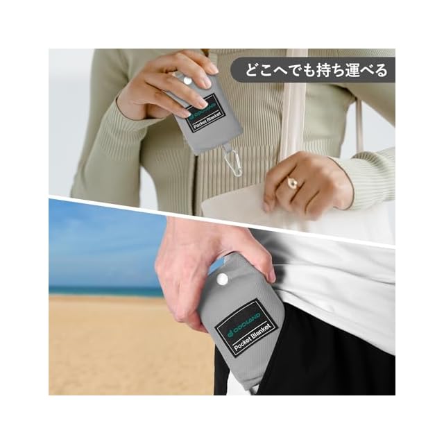 【ポケットサイズ】: ブランケットの隅にある一体型収納袋が含まれています。収納サイズ 8x12cm、片手でつかむことができます。