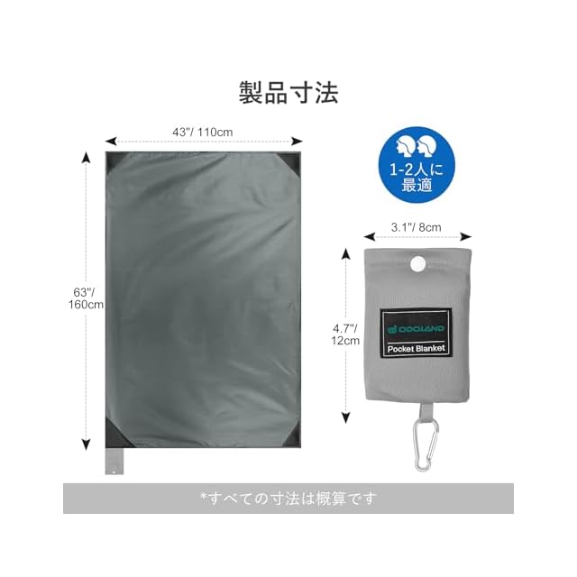 【あらゆる場所に最適】: Odoland トラベルブランケットは、あらゆるアウトドアシーンに最適です。 ビーチマット(サンドフリー)、ピクニックブランケット、キャンプマット、ビーチシート、トラベルブランケットとしてお使いいただけます。 コンサートやフェスでのグランドタープ。 使い勝手の良い万能ブランケットです。