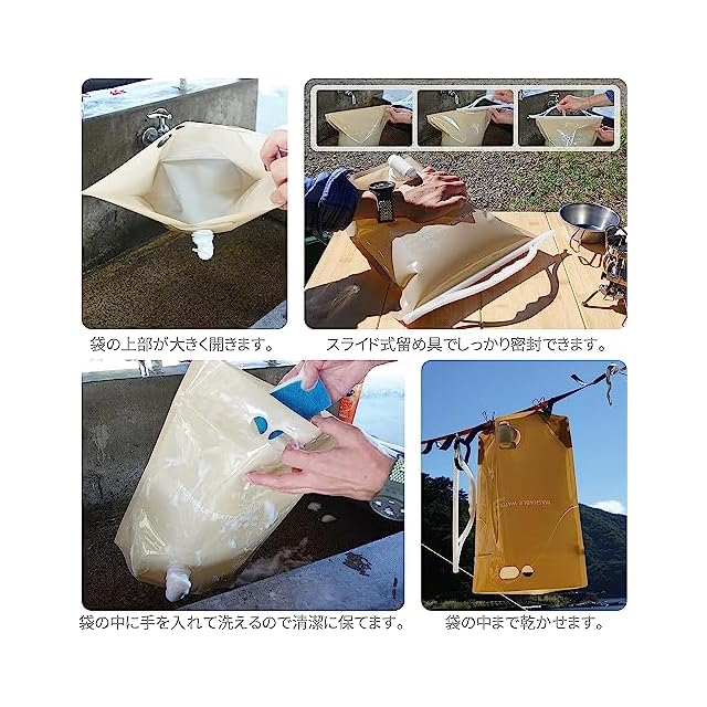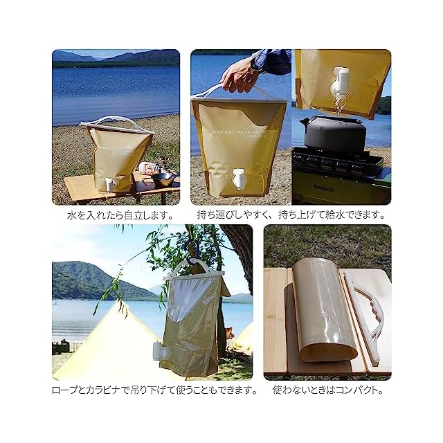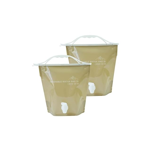 岩谷マテリアル(Iwatani Materials) 水タンク ウォッシャブル ウォーターバッグ 5L 2個セット サンドベージュ WWB-5SB 洗える 乾かせる 注ぎやすいコック付き キャンプ レジャー 防災 コンパクトにたためる | Trend Design BASE店