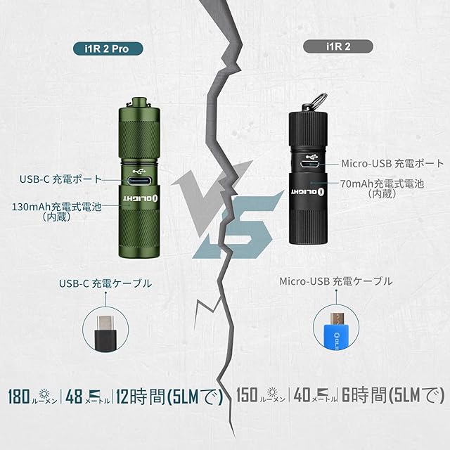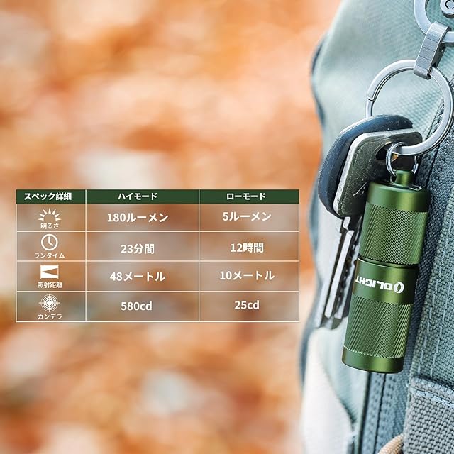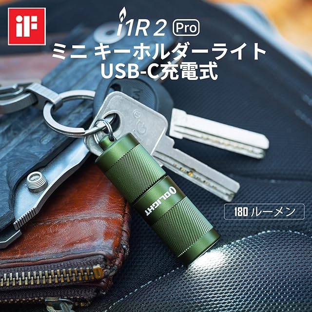 商品名:OLIGHT(オーライト) I1R 2 PRO ledライト 懐中電灯 フラッシュライト 180ルーメン Type-c 充電式 キーホルダー 付き 小型 IPX8防水 強力 軽量 防災 散歩 夜道 緊急用 (アーミーグリーン)